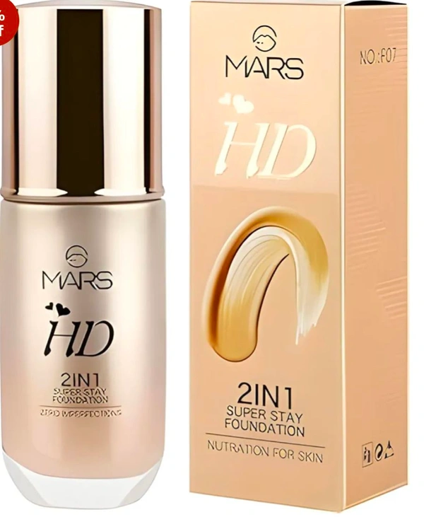 Mars HD 2IN1 Super Stay Foundation Light Weight Waterproof F07 60ml (Shade 101-Ivory)(Pack of 1)